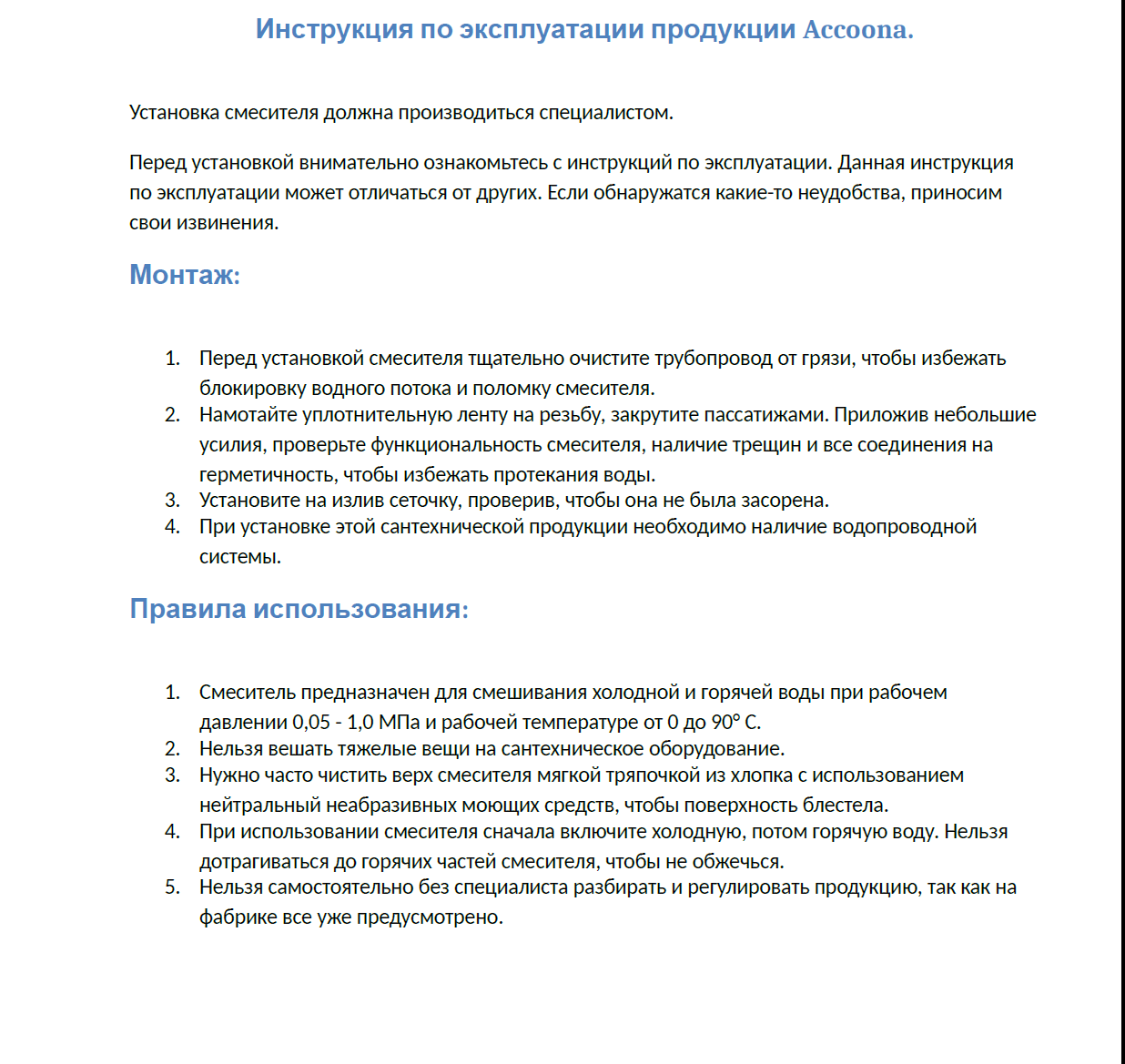 | Назначение | Для раковины |