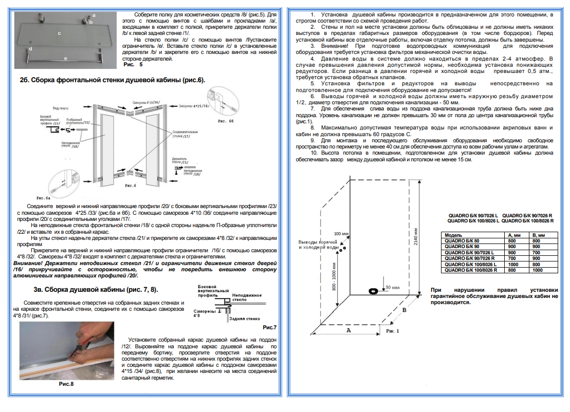 | Материал поддона | Акрил |