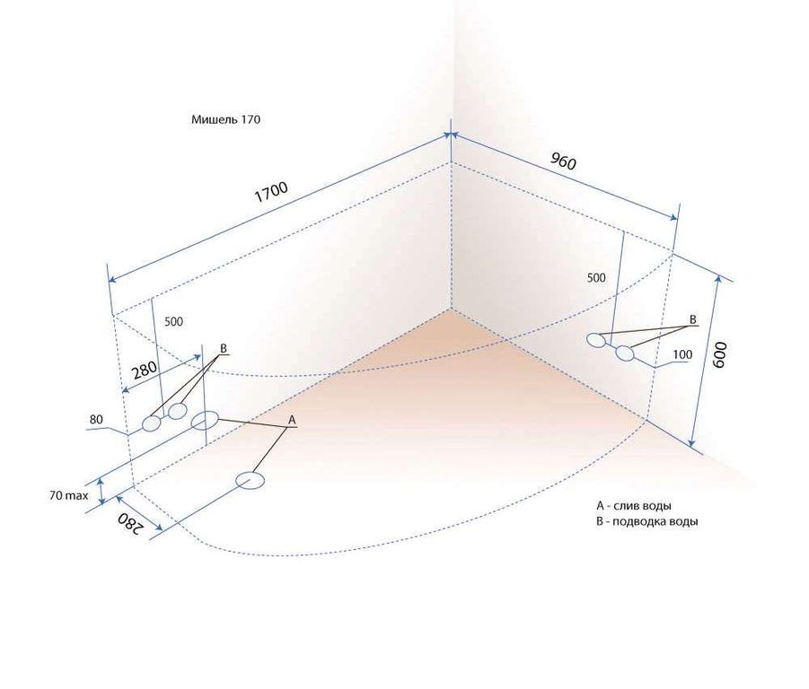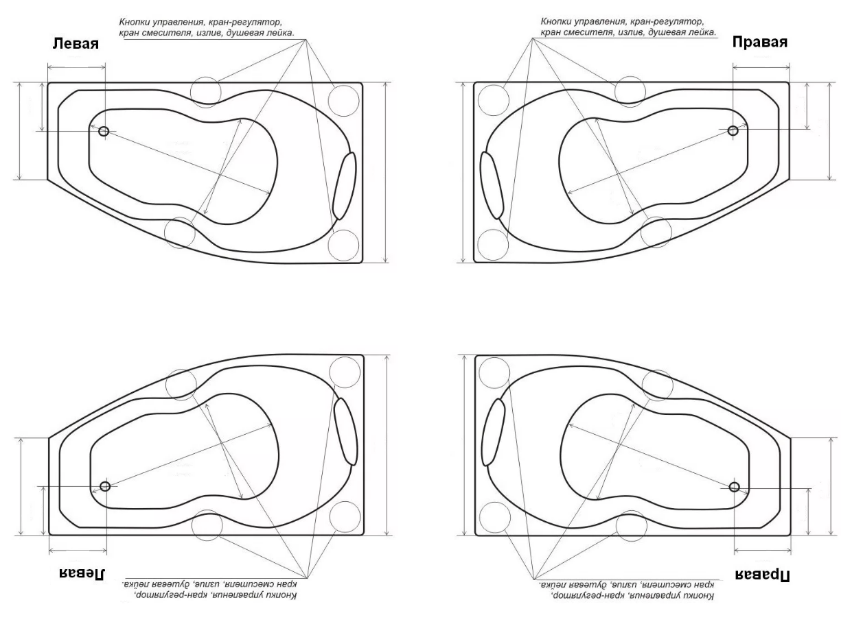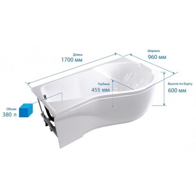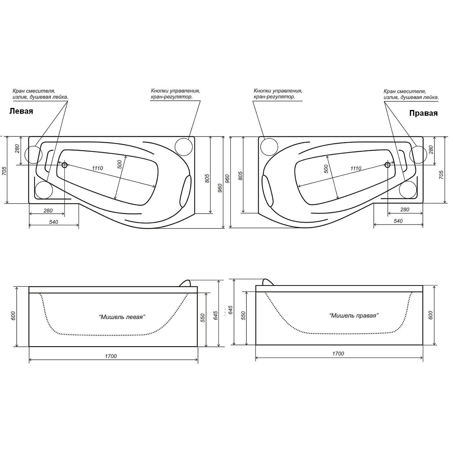 | Место установки торцевого экрана для ванны | На узкую сторону |