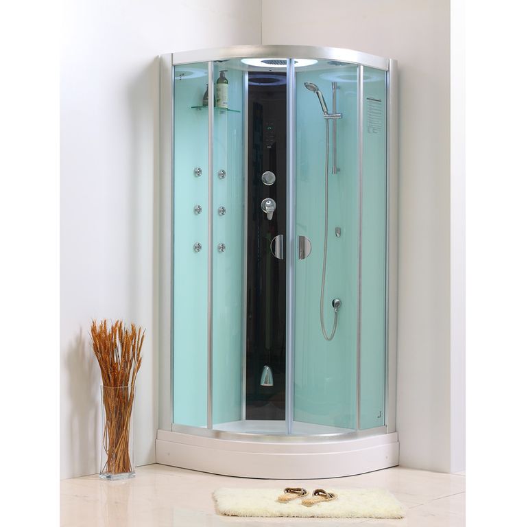 - Смеситель, радио, парогенератор, подсветка, вентилятор, верхний душ, 3-х режимная душевая насадка A11031, душевая стойка SIC6500i17, стальной шланг IDDIS 1,5 м (double lock), полка, без сиденья;