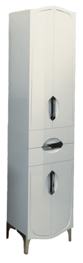 Особый финский взгляд на вещи. Плавные асимметричные линии фрезеровок сочетаются с парными хромированными ручками, утопленными в глубоких нишах. Металлические хромированные ножки и прямые фасады ящиков восстанавливают необходимый порядок.