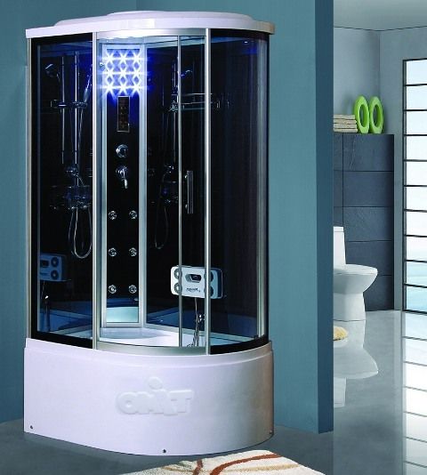 Левосторонняя душевая кабина, размеры 1100х850х2200, высота поддона 450 мм, парогенератор, верхний душ (тропический ливень), встроенный однорычажный смеситель TIMO с четырехрежимным переключателем на верхний душ (TROPICAL RAIN), сенсорный пульт нового поколения TsCP с функциями включения/выключения, FM-радио, верхний и боковой свет, гидромассаж ступней, вентиляция, безопасное напряжение на выходе 12 V.